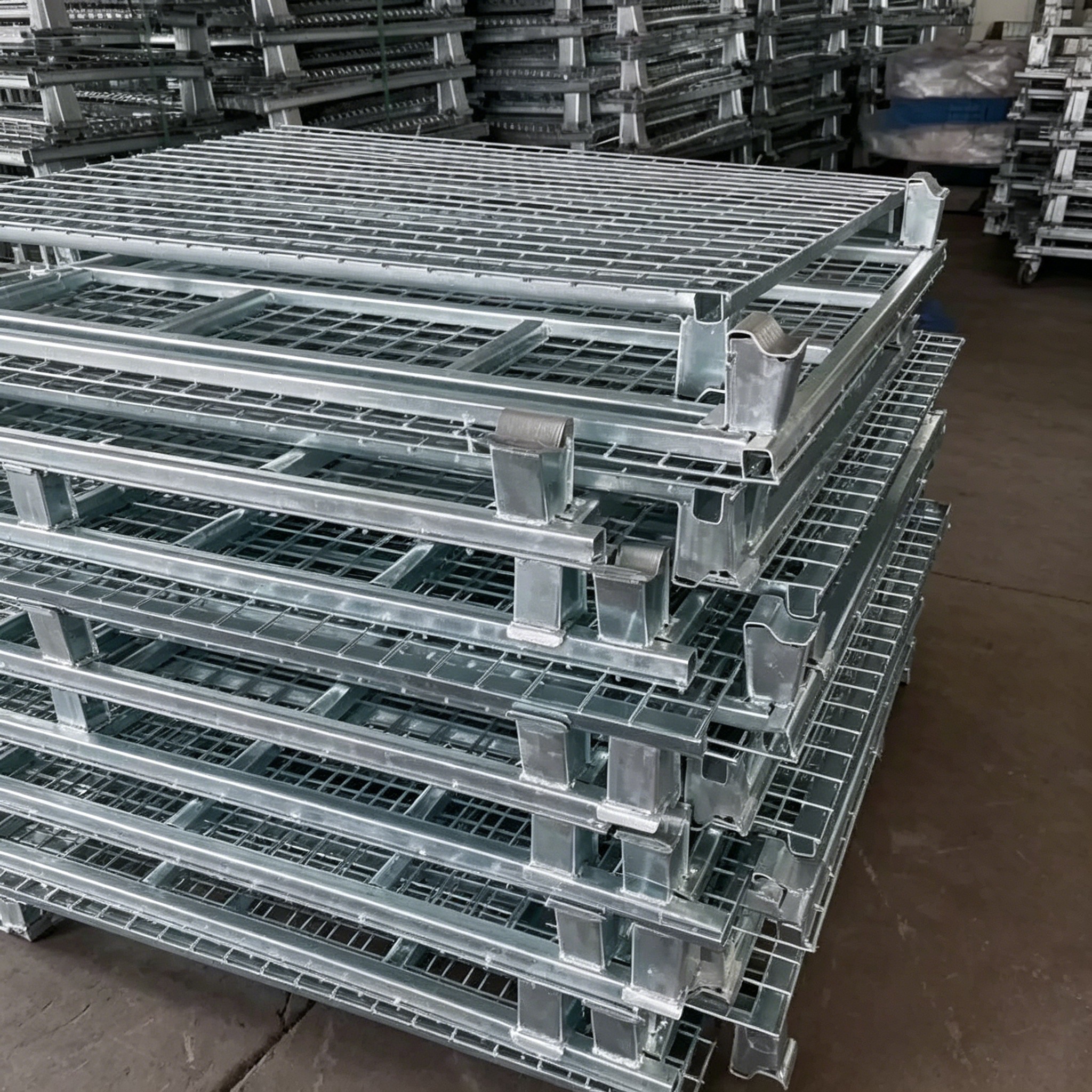 স্টোরেজ কেজঃ ফোল্ডেবল, দক্ষ স্টোরেজ এবং পরিবহনের জন্য স্ট্যাকযোগ্য।